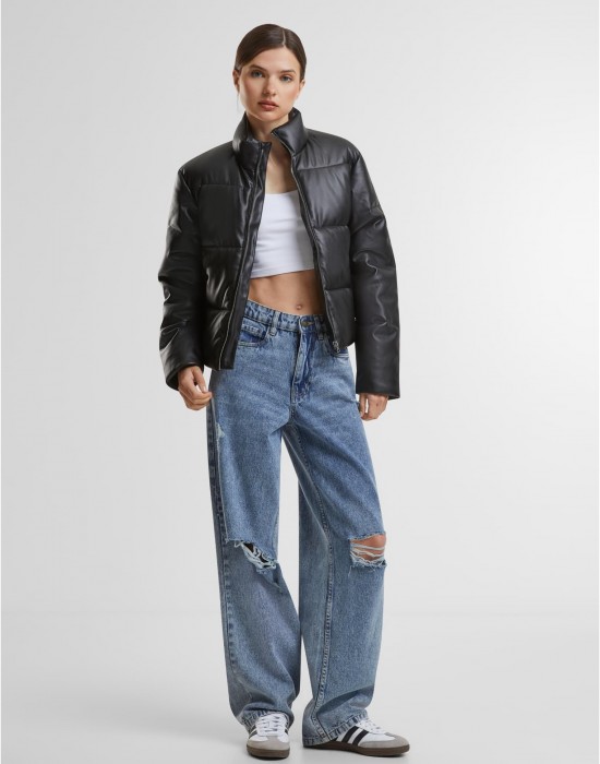 Дамско яке в черно Urban Classics Synthetic Leather Puffer